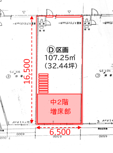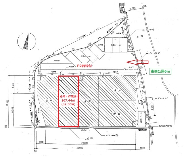 | 設備 | ★平屋建:107.25㎡(32.44坪)倉庫 *未登記の中2階部分あり*【残置物扱い】 ★駐車スペース有り2台可(賃料に込み) ★手動シャッター(内部サッシドア) ★トイレ ★1階部奥に間仕切りスペース有り ■照明器具は【残置物扱い】 ■中2階部を引き継ぐ場合、退去時解体撤去義務あり ■検査済証なし 【注】賃貸保証等:基本加入要 【注】住居地域の為、工場使用不可・車・バイク関連の業種不可 |