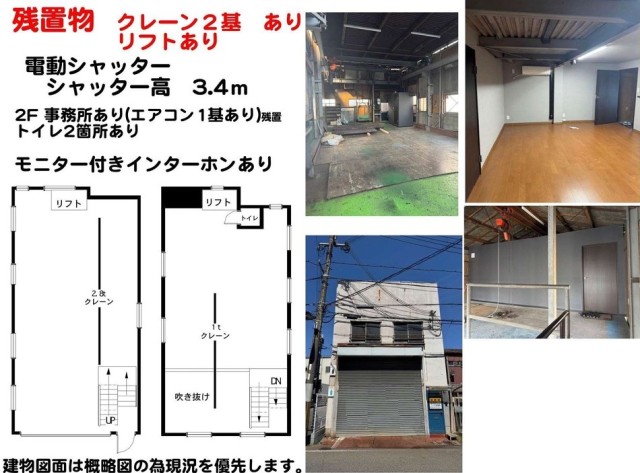 【R43】すぐの立地・2階建倉庫/工場延べ36坪・クレーン2基と荷物用リフト残ってます!