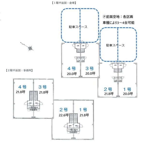 【築浅2階建倉庫/事務所】2024年2月竣工物件・各階20坪強~延べ41坪・Ⓟスペース大です!