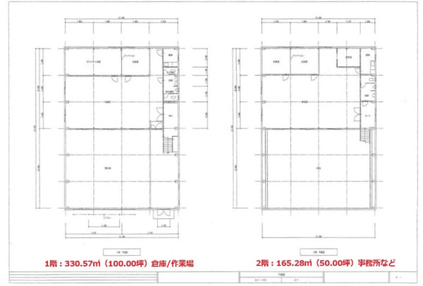 | 設備 | ・リフト付 ・キュービクル ★1階:330.57㎡(100.00坪)倉庫/作業場など 2階:165.28㎡(50.00坪)事務所/作業場など 延べ:495.85㎡(150.00坪) ★Ⓟ前面空地:数台可能 ★荷物用リフト ★キュービクル(使用に伴う諸費用は借主様負担) ★空調・WC ■本物件は、旧耐震構造の建物です。 ■警備費・消防点検費・ゴミ処理代・水道光熱費・キュービクル関連費用は借主様負担 |