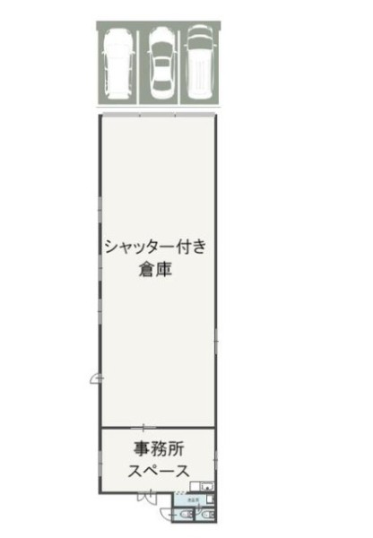 | 設備 | ★平屋建:177.07㎡(53.56坪)倉庫/作業場 ★Ⓟ前面空地:3台程度可 ★手動シャッター:3枚式 ★事務所部分あり ★WC2箇所・流し台・洗面台 |