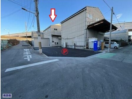 | 設備 | ★1階倉庫/工場:92.24㎡(27.90坪) 2階事務所など:92.24㎡(27.90坪) 延べ:184.48㎡(55.80坪) ★クレーンガータ(両サイドのみ) ★Ⓟ南側空地:6台程度可(約38坪) ★電動シャッター ★2Fエアコン(残置物) ★WC、照明 |