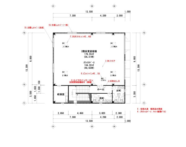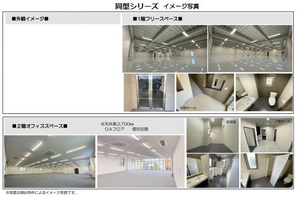 | 設備 | ★1F倉庫/作業場:152.95㎡(46.26坪) 2F事務所:179.55㎡(54.31坪) 延べ:332.50㎡(100.58坪) ★Ⓟ前面空地:7台程度可 ★玄関ステンレス親子扉(電気錠) ★1Fスロップシンク、WC(WR便座) ★電動シャッター:H3,150 W4,150 ★2F事務所部エアコン天井型:5台 ★2F男女別WC(WR便座)・給湯室 ★天井高1F:3,7502F:2,700 ★モニター付インターホン ★2F:OAフロア ★LED照明 ■ご入居に伴う借主様負担改装・改造工事は貸主側指定業者にての施工条件となります |
