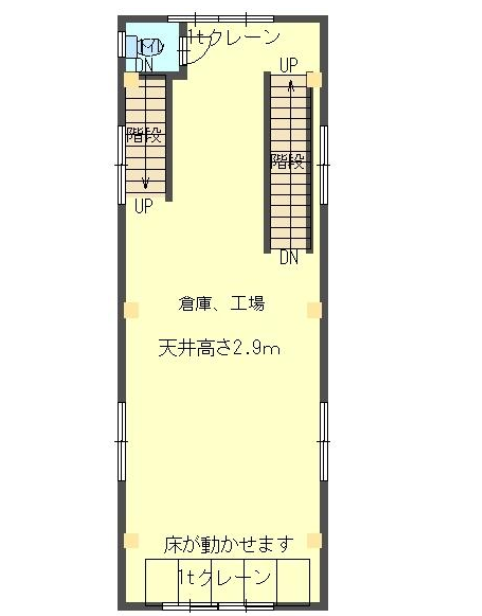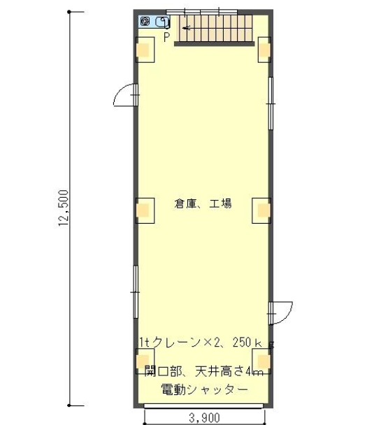 | 設備 | ■登記簿は3階建:4階増築部分未登記 ★1階:49.81㎡(15.06坪)倉庫/工場/車庫など 2階:49.81㎡(15.06坪)倉庫/作業場など 3階:49.81㎡(15.06坪)事務所など 4階:19.08㎡(5.77坪)倉庫など ★電動シャッター 延べ:168.51㎡(50.97坪) ★Ⓟ車輌1階内部入庫可 ★WC:2箇所 ★1階天高:4,000【開口部あり】 ★クレーン:1階1t×1基 2階1t×2基 ■クレーン・電気設備関係は残置物扱い |