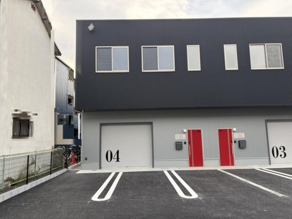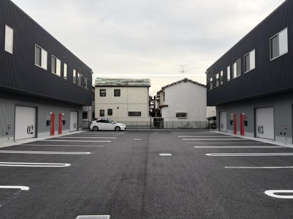 【新築・2025年12月中旬竣工】2階建倉庫/事務所~西棟WEST全4区画・各区画Ⓟ2台+小型1台可!