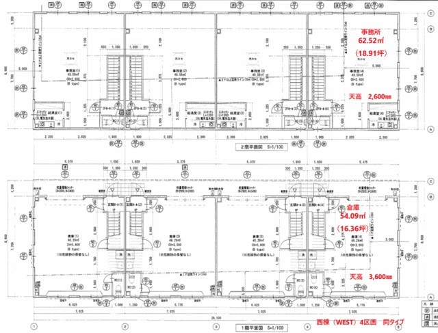 | 設備 | ★IBARAKI BASE 西棟WEST:4区画共~同タイプ(01・02・03・04) ★1階:54.09㎡(16.36坪)倉庫/軽作業場 2階:62.52㎡(18.91坪)事務所仕様 延べ:116.61㎡(35.27坪) ★Ⓟ前面空地:各区画2台+小型1台(無料) ★別途・敷地内Ⓟ幅2,300:11,000/台【契約済み残枠なし】 ★天高:1階3,600 2階2,600 ★軽量電動シャッター:H2,400×W2,800 ★外部:散水栓・ポスト・社名掲示板・モニターホン ★外部共用部分:防犯カメラ設置 ★1階:コンクリ土間防塵塗装・洗濯機置場・手洗シンク・WRトイレ・LED照明 ★2階:タイルカーペットOAフロア・天カセエアコン・モニターホン IH付ミニキッチン(電気温水器)・WRトイレ・LED照明 【注】近隣住宅地の為、【騒音・振動・臭気】を伴う業種は不可 【注】危険物の保管は禁止 【注】物件周辺道路:3t規制道路多し 【注】建物全体の火災監視システムがセコム㈱の為、各テナント様の個別機械警備導入はセコム㈱限定となります |